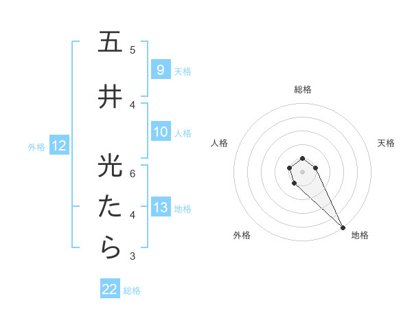 五井 光たらさんの地格は13画の5点!