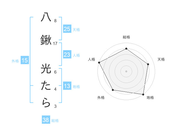 八鍬 光たらさんを姓名の画数から五運を鑑定