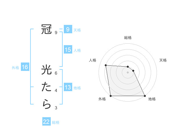 冠 光たらさんの地格は13画の5点!