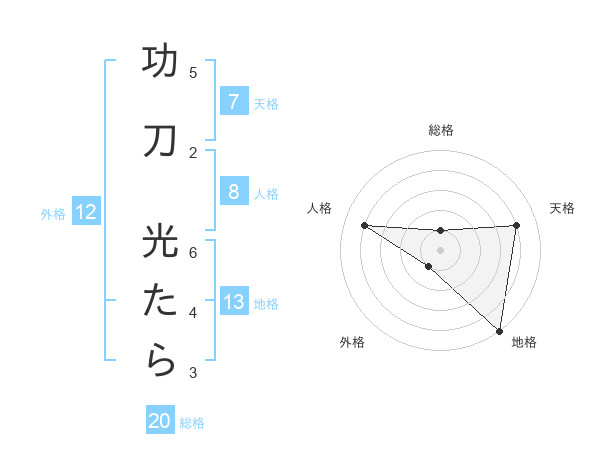 功刀 光たらさんを姓名の画数から五運を鑑定