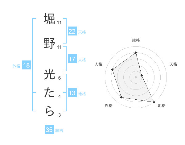堀野 光たらさんの天格は22画の1点!
