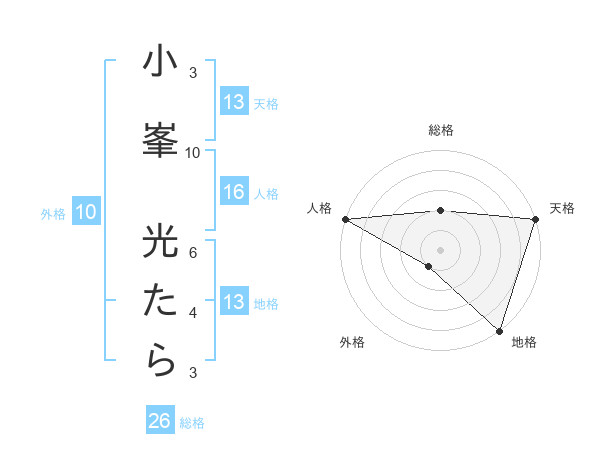 小峯 光たらさんの地格は13画の5点!