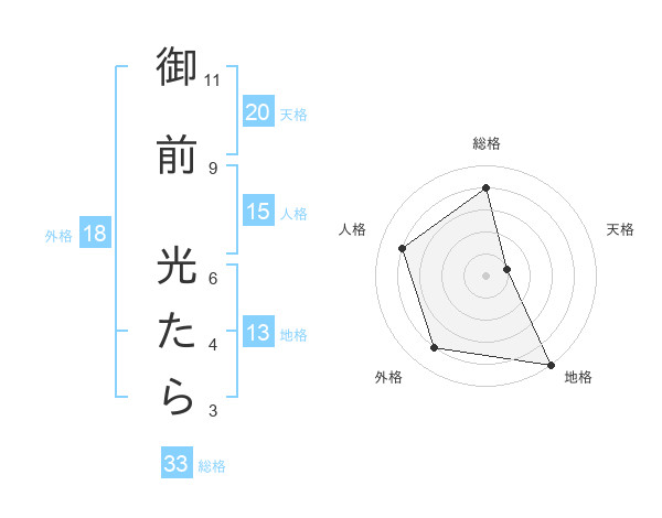 御前 光たらさんの総格は33画の4点!