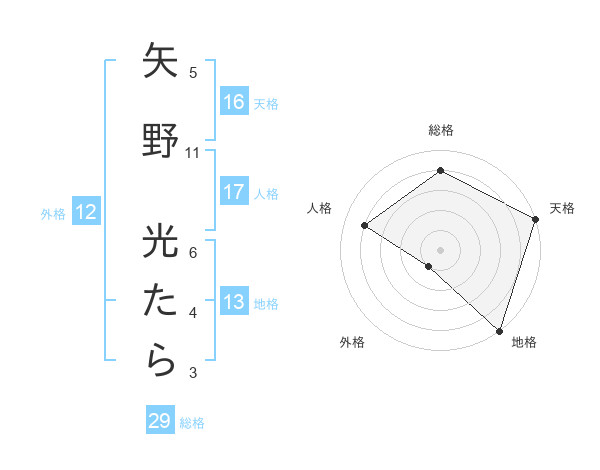 矢野 光たらさんを姓名の画数から五運を鑑定
