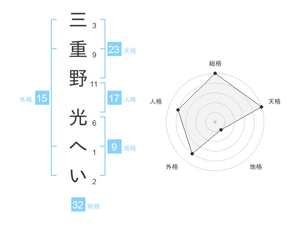 三重野 光へいさんを姓名の画数から五運を鑑定