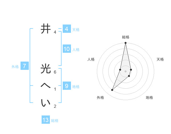 井 光へいさんの総格は13画の5点!