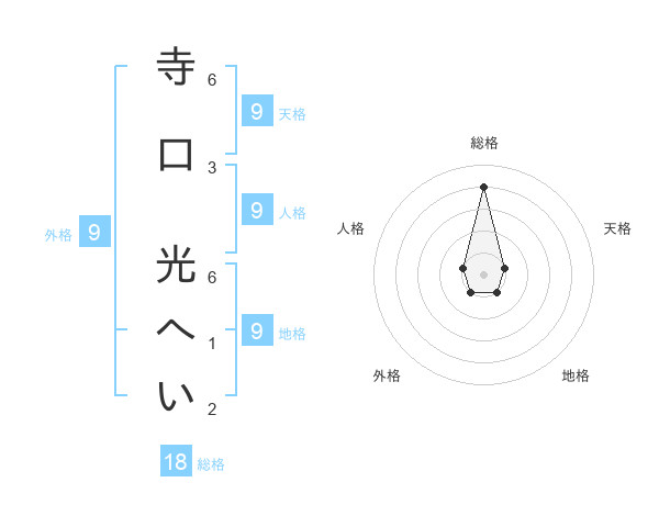 寺口 光へいさんの地格は9画の1点!