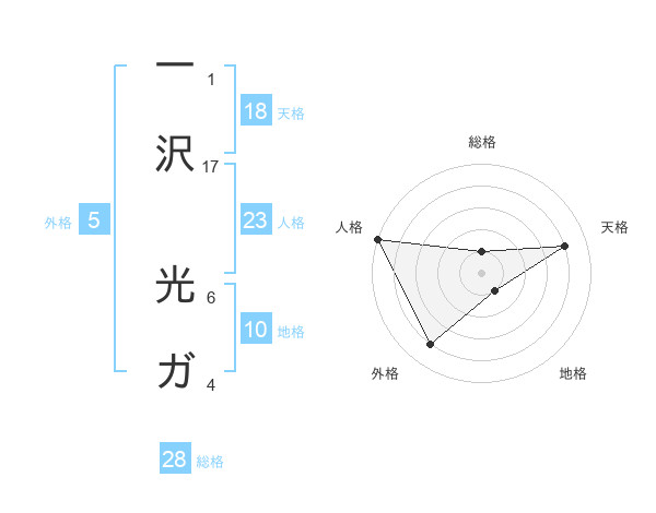 一沢 光ガさんを姓名の画数から五運を鑑定