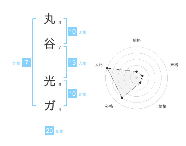 丸谷 光ガさんを姓名の画数から五運を鑑定