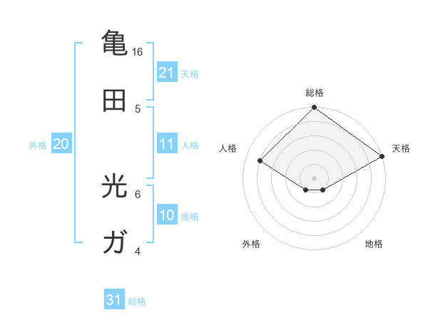 亀田 光ガさんを姓名の画数から五運を鑑定