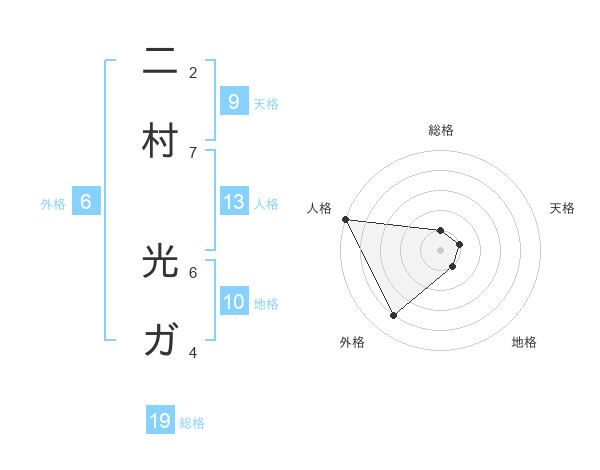 二村 光ガさんの総格は19画の1点!
