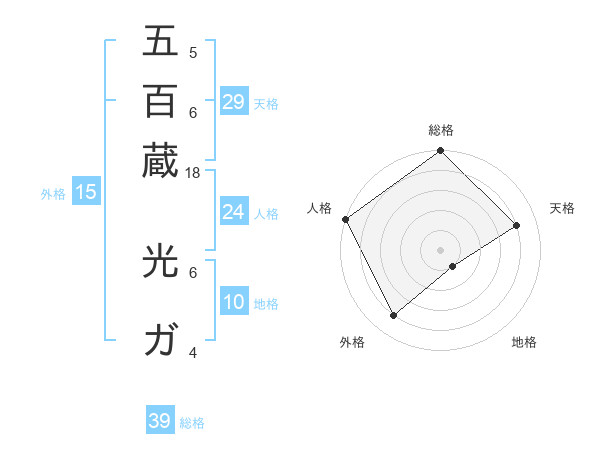 五百蔵 光ガさんの総格は39画の5点!