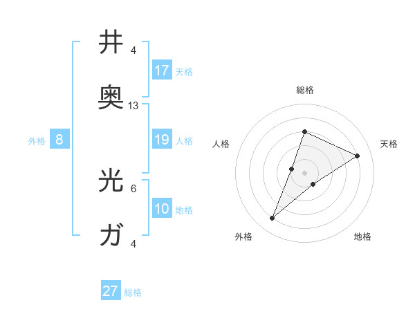 井奥 光ガさんの総格は27画の3点!