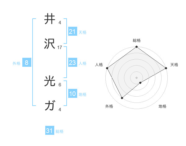 井沢 光ガさんを姓名の画数から五運を鑑定