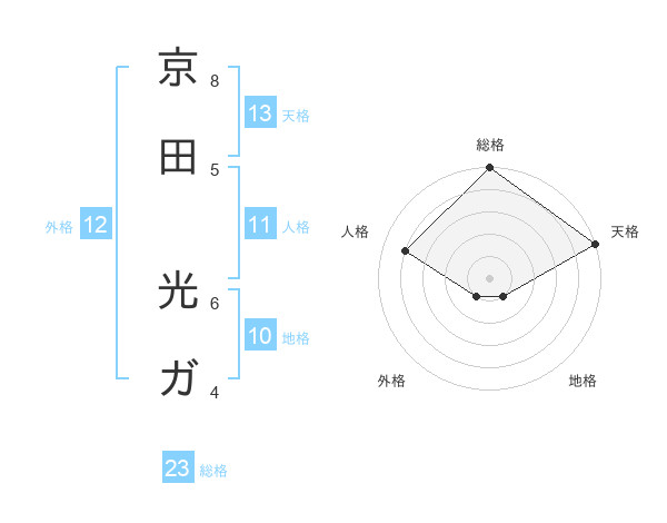 京田 光ガさんの天格は13画の5点!