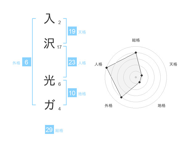 入沢 光ガさんの総格は29画の4点!