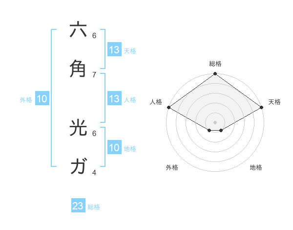 六角 光ガさんの天格は13画の5点!