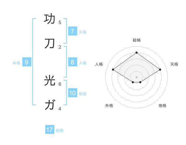 功刀 光ガさんの天格は7画の4点!