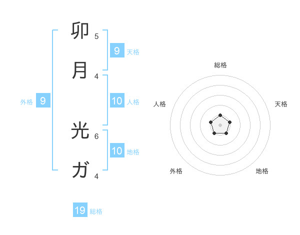 卯月 光ガさんを姓名の画数から五運を鑑定