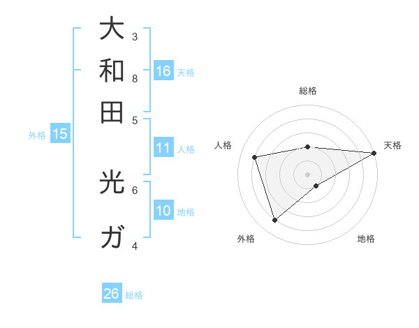 大和田 光ガさんの総格は26画の2点!