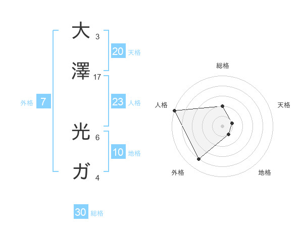 大澤 光ガさんの総格は30画の2点!