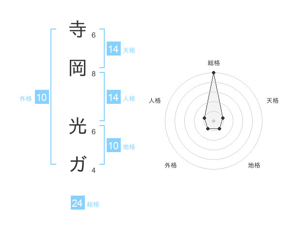 寺岡 光ガさんの総格は24画の5点!