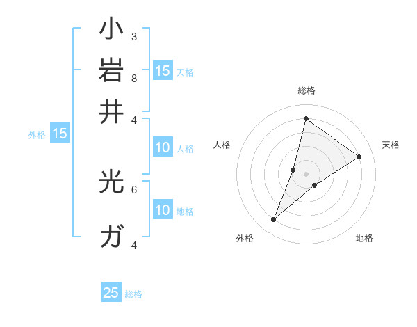 小岩井 光ガさんの総格は25画の4点!