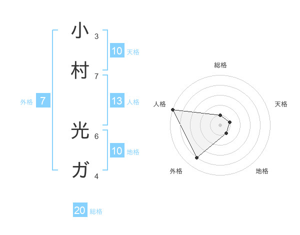 小村 光ガさんの総格は20画の1点!