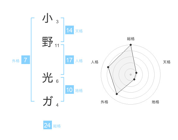 小野 光ガさんの総格は24画の5点!
