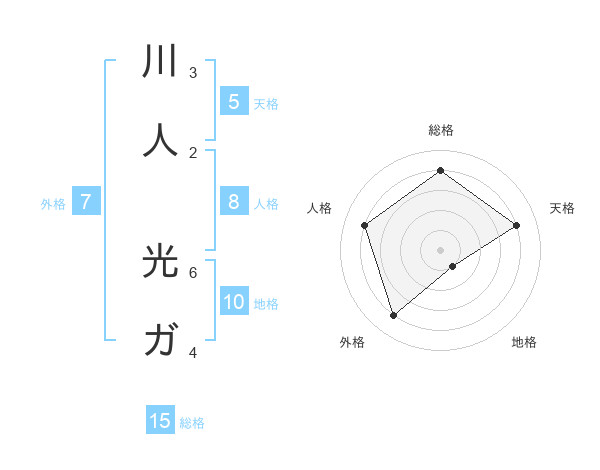 川人 光ガさんの総格は15画の4点!