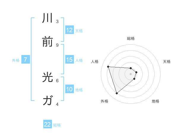 川前 光ガさんの総格は22画の1点!