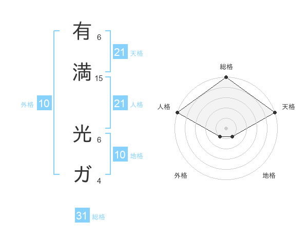 有満 光ガさんの天格は21画の5点!
