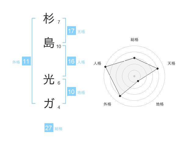 杉島 光ガさんを姓名の画数から五運を鑑定