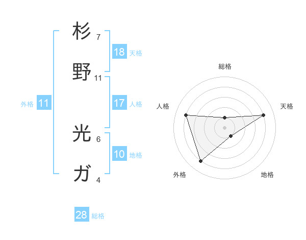 杉野 光ガさんの総格は28画の1点!