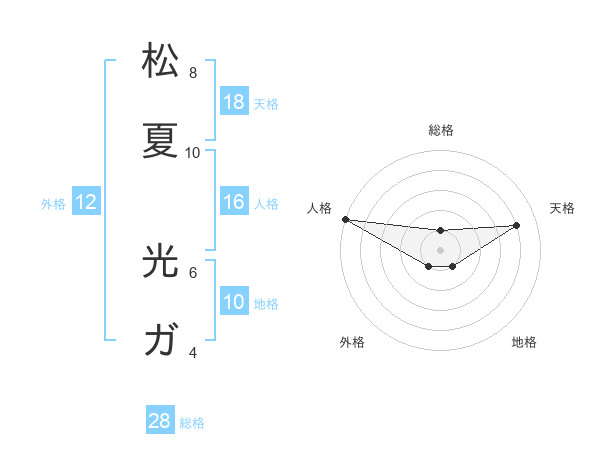 松夏 光ガさんを姓名の画数から五運を鑑定