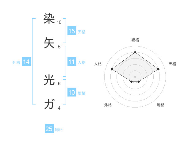 染矢 光ガさんの総格は25画の4点!