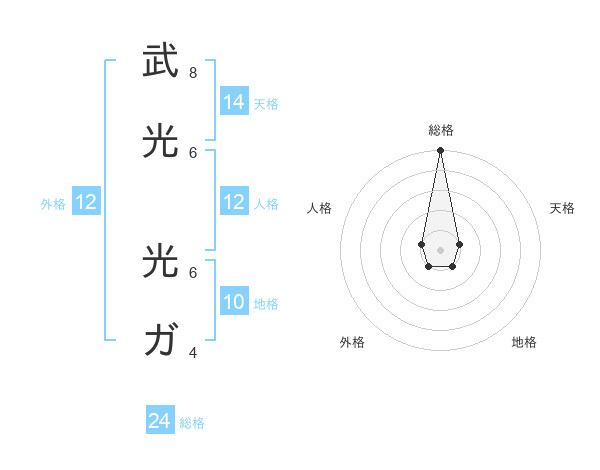 武光 光ガさんの総格は24画の5点!