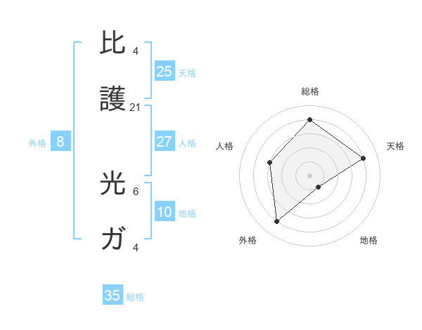 比護 光ガさんの天格は25画の4点!
