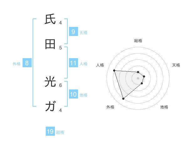 氏田 光ガさんの外格は8画の4点!
