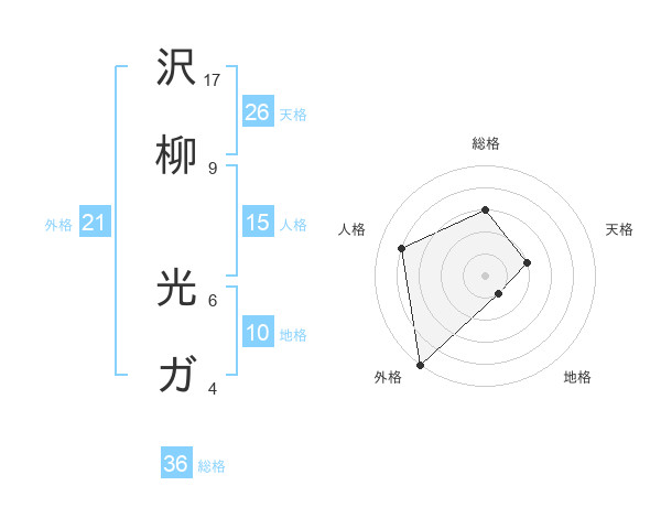 沢柳 光ガさんの天格は26画の2点!