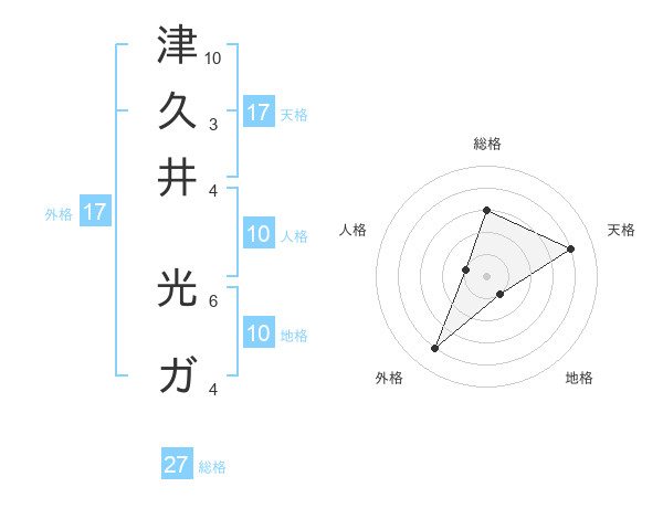 津久井 光ガさんを姓名の画数から五運を鑑定