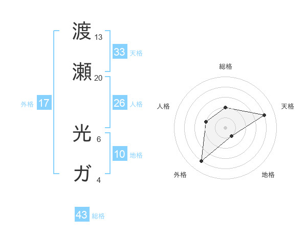 渡瀬 光ガさんを姓名の画数から五運を鑑定