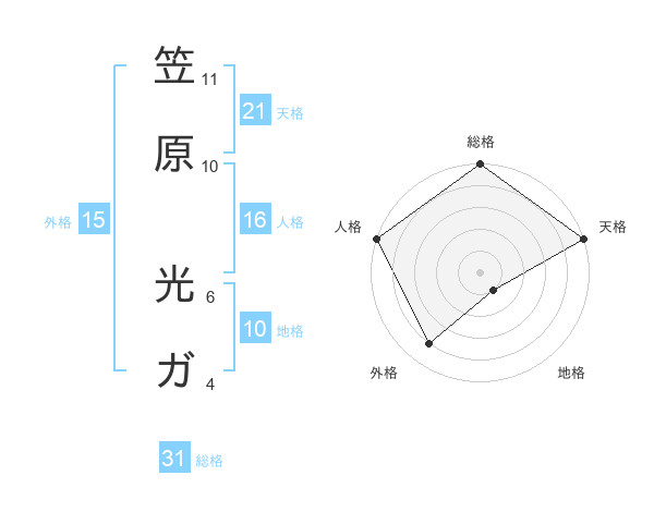 笠原 光ガさんの総格は31画の5点!
