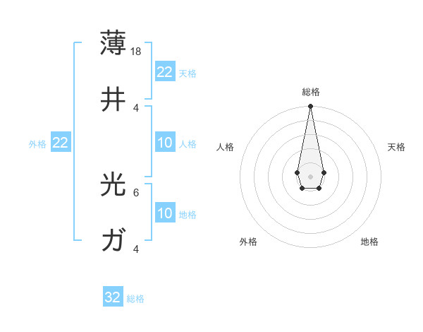 薄井 光ガさんの天格は22画の1点!