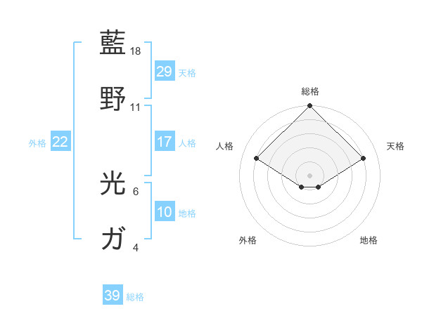 藍野 光ガさんの総格は39画の5点!