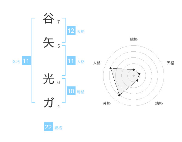 谷矢 光ガさんの総格は22画の1点!