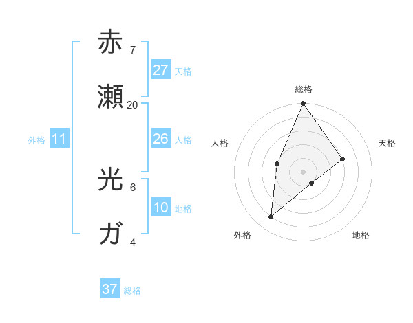 赤瀬 光ガさんを姓名の画数から五運を鑑定