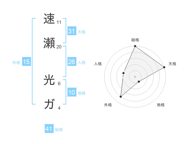速瀬 光ガさんの天格は31画の5点!
