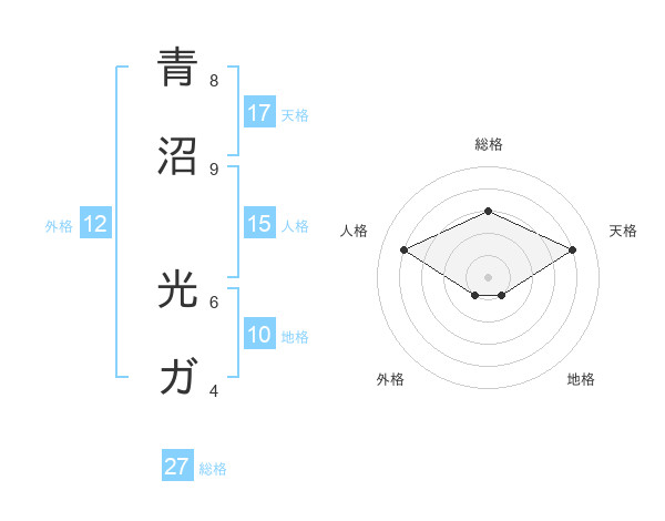 青沼 光ガさんを姓名の画数から五運を鑑定