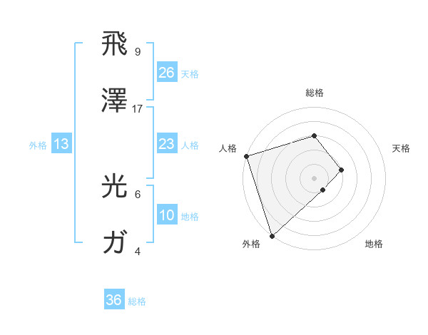 飛澤 光ガさんの外格は13画の5点!